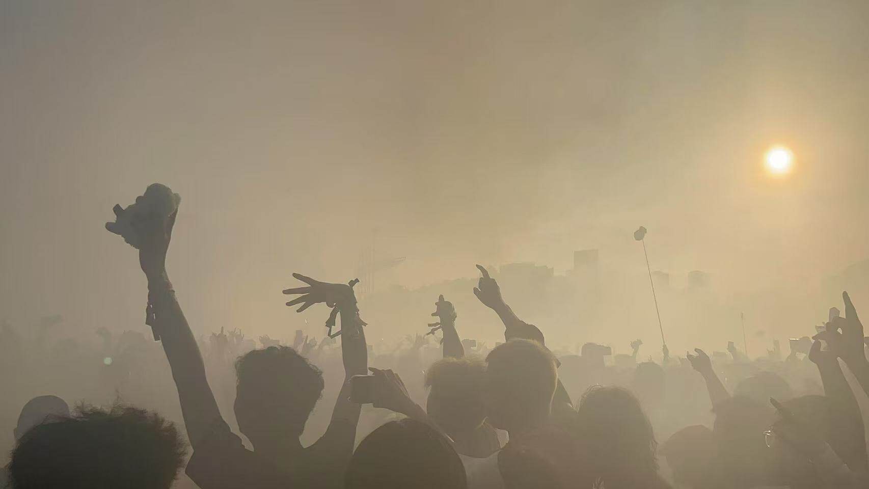 来自全国各地的摇滚爱好者在音乐节上狂欢