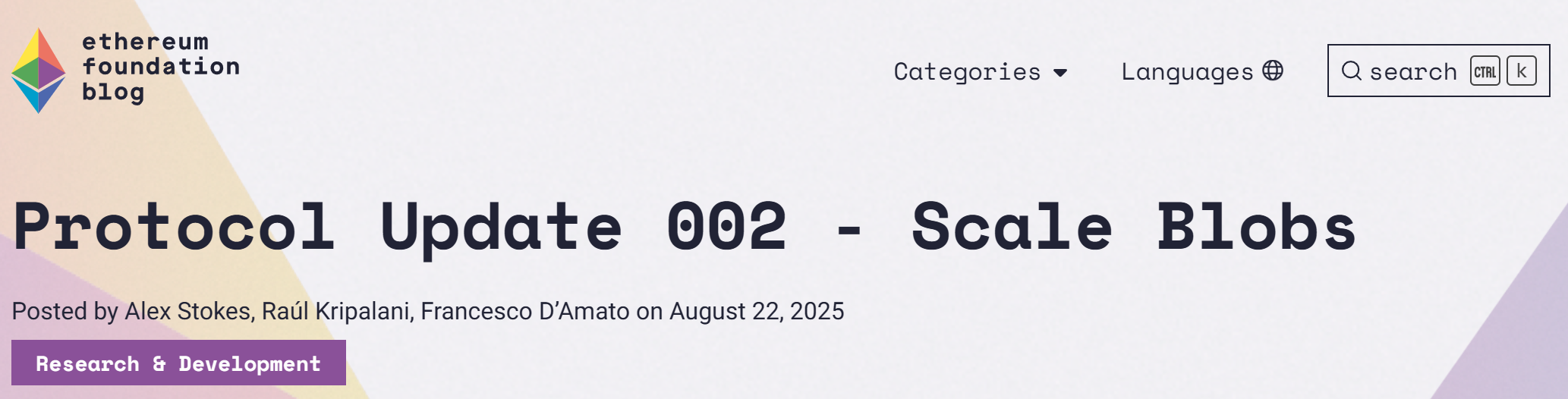 - 以太坊基金会发布 Protocol 更新 002