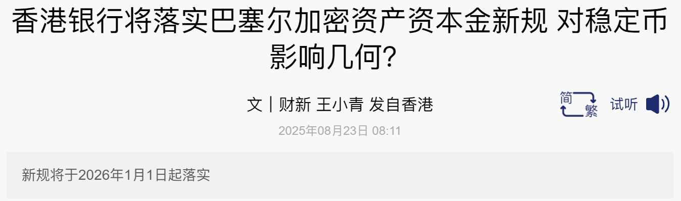 - 香港金管局拟于 2026 年 1 月 1 日落实巴塞尔加密资产资本金新规