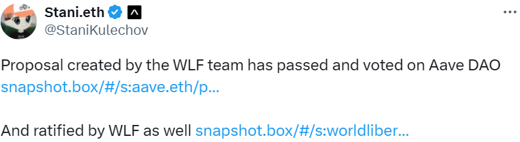 - Aave 创始人:由 WLFI 团队创建的提案已在 Aave DAO 投票并通过