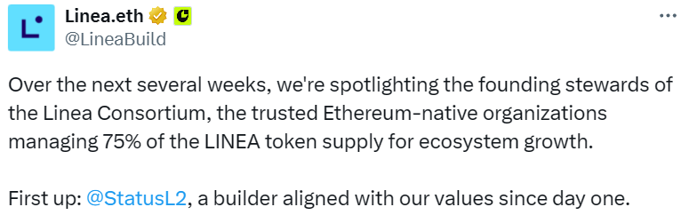 - Status 将通过 Linea 构建 L2