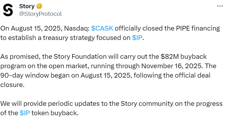 - Story 基金会将在公开市场启动总额 8200 万美元的 IP 回购计划