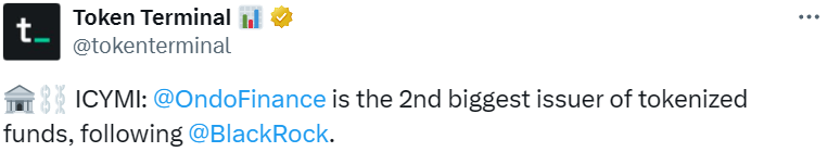 - Ondo Finance 成为代币化基金第二大发行方