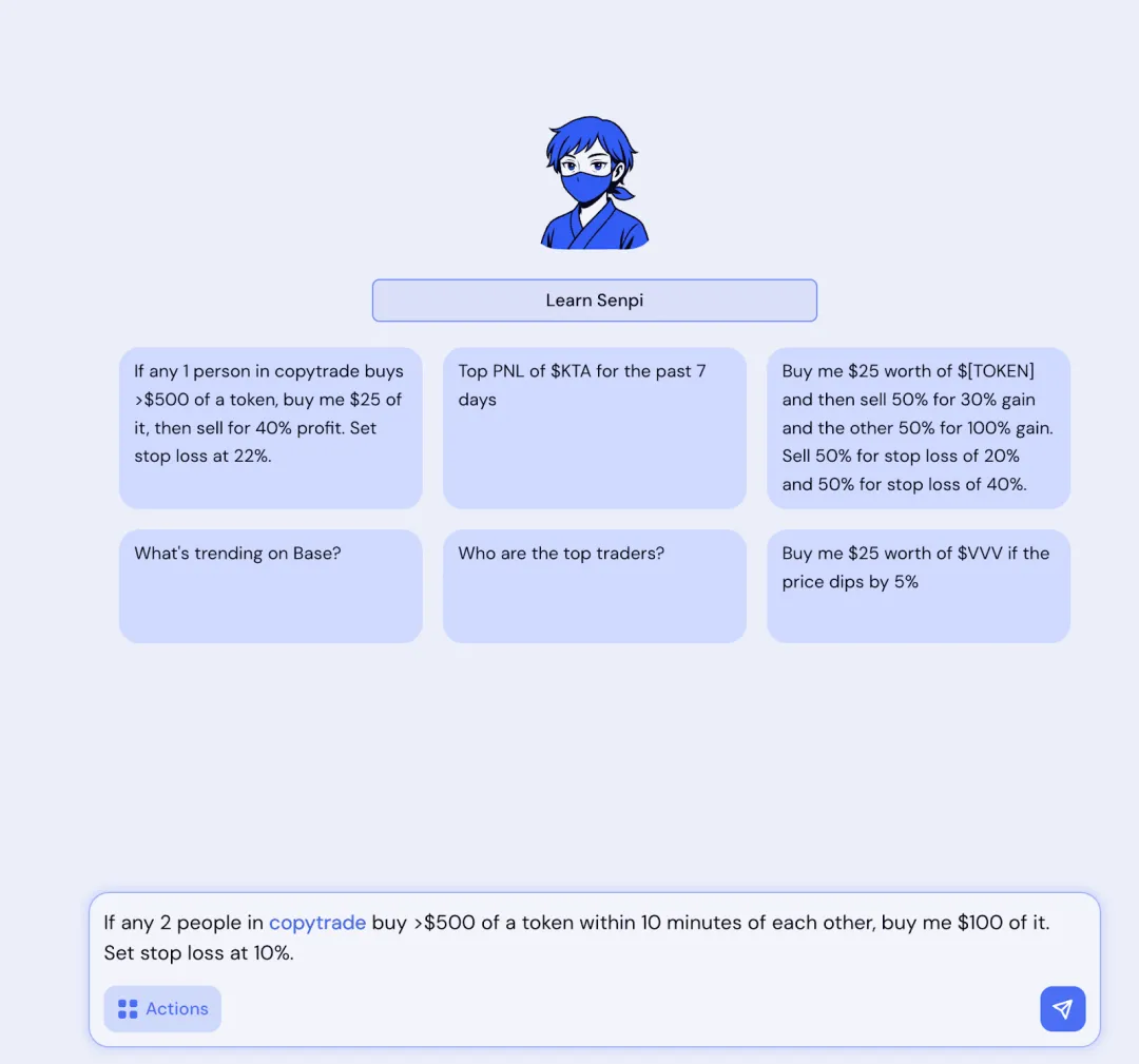 - 自动化:人无法一天 24 小时盯盘交易,但 AI 可以。例如,用户可以在 Senpi 平台向 Agent 下达带止盈止损的 Copy Trading 条件买入单。这就需要 AI 在后台实时对数据做轮询或监控处理,并在监控到建议信号时自动决策下单。