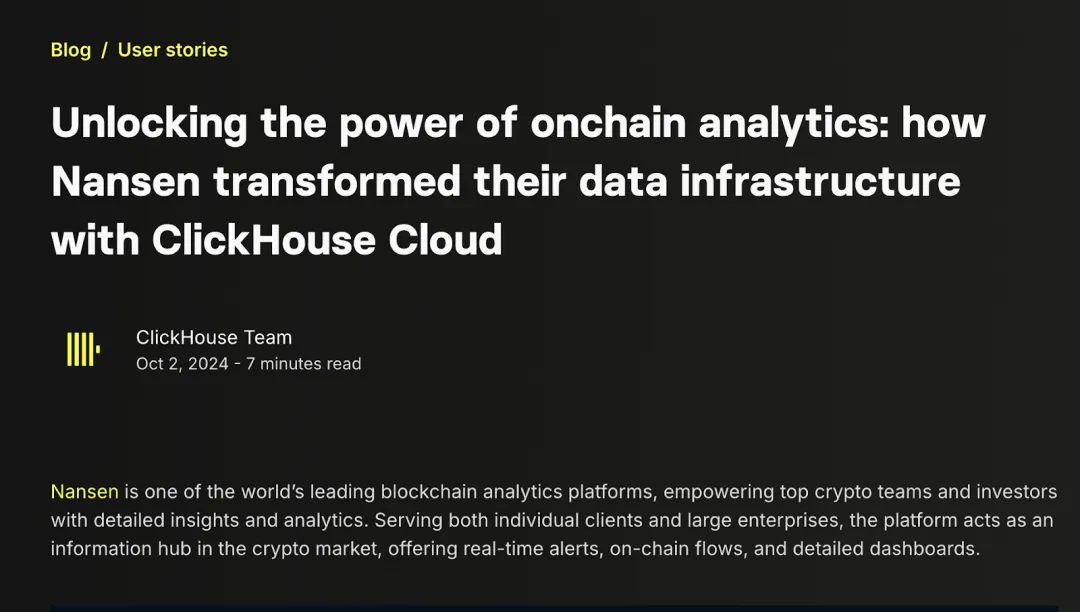 为应对数据供给侧的挑战,部分平台已转向流式与实时架构。The Graph 借助 Substreams 与 Firehose 将数据延迟压缩至近实时。Nansen 通过引入 ClickHouse 等流式处理技术,在 Smart Alerts 与实时仪表盘上实现了数十倍性能提升。Pangea 则通过汇聚社区节点提供的计算、存储与带宽,以不到 100ms 的延迟为做市商、量化分析师、中央限价订单簿 (Clobs) 等 B 端提供实时流式数据。