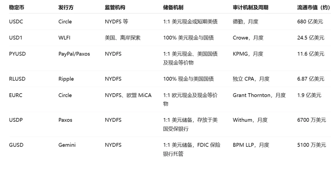 在这套分类中,合规稳定币(USDC、FDUSD、PYUSD、GUSD、USD1 等)并不是要取代 USDT,而是要作为一条平行赛道,为跨境支付、机构应用和金融合规提供合法、安全的选择。