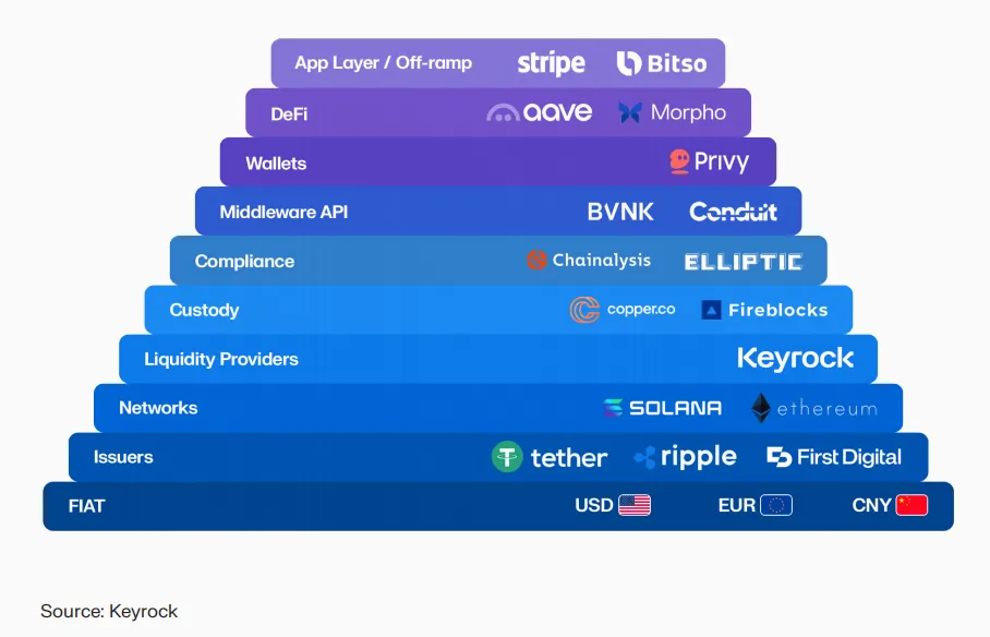 Keyrock 与 Bitso 亲历了这场变革:从为拉丁美洲提供实时汇款,到为交易所和场外市场提供机构级稳定币流动性。稳定币正在打开金融普惠的大门,成为 SWIFT、预存资金和净额结算之外的互联网原生替代方案。个人汇款时间从 “数天” 缩短为 “数秒”,财资管理被彻底重构,机构也在将稳定币基础设施嵌入核心运营。