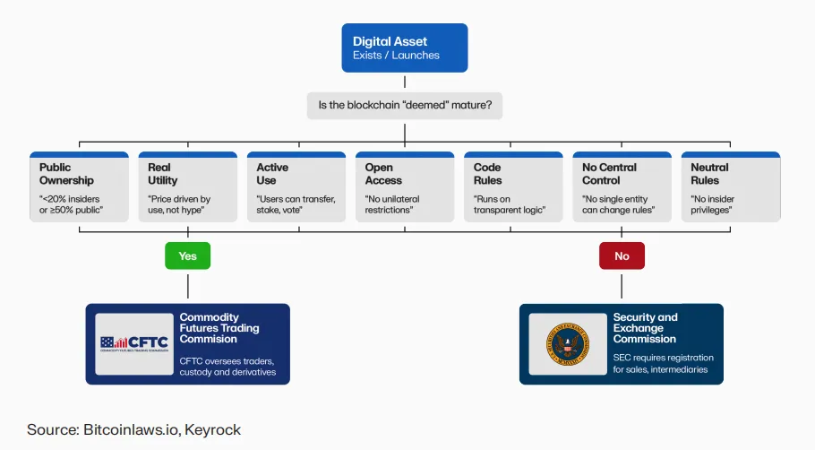 预计于 2025 年底生效的《CLARITY 法案》为数字资产制定了清晰的分类框架,明确代币属于 “证券”“商品” 还是 “获准支付稳定币”。这一分类消除了发行方、开发者和机构用户的合规不确定性。