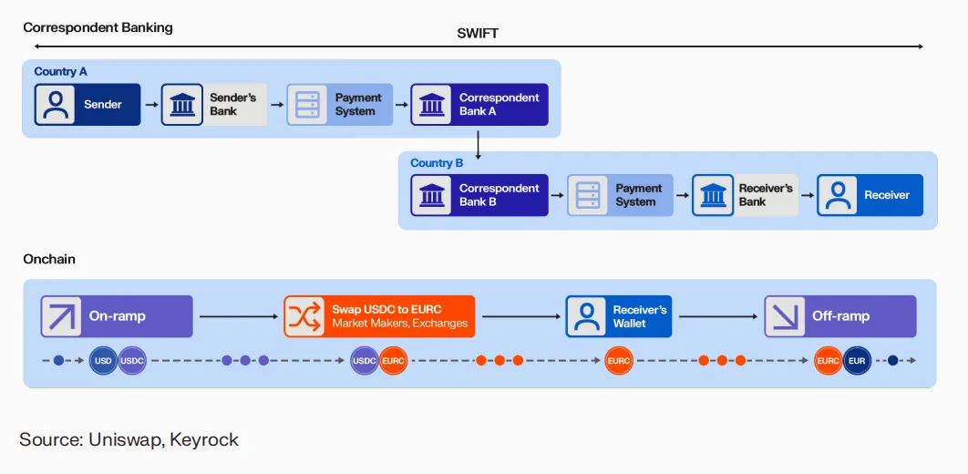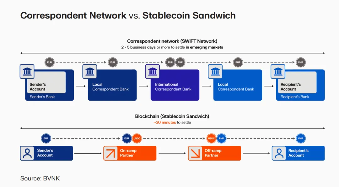 这正是稳定币带来的全新范式:它们不只是更快更便宜,而是把支付栈 “压扁”——去掉中间商、把合规写进代码、实现跨境即时结算。