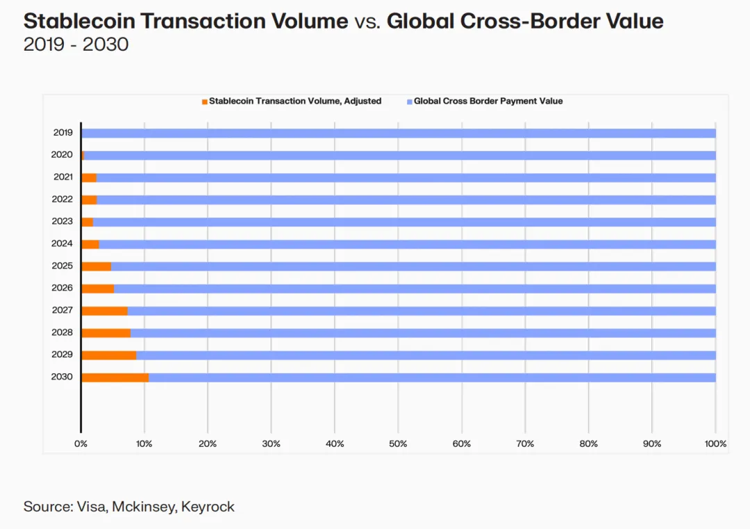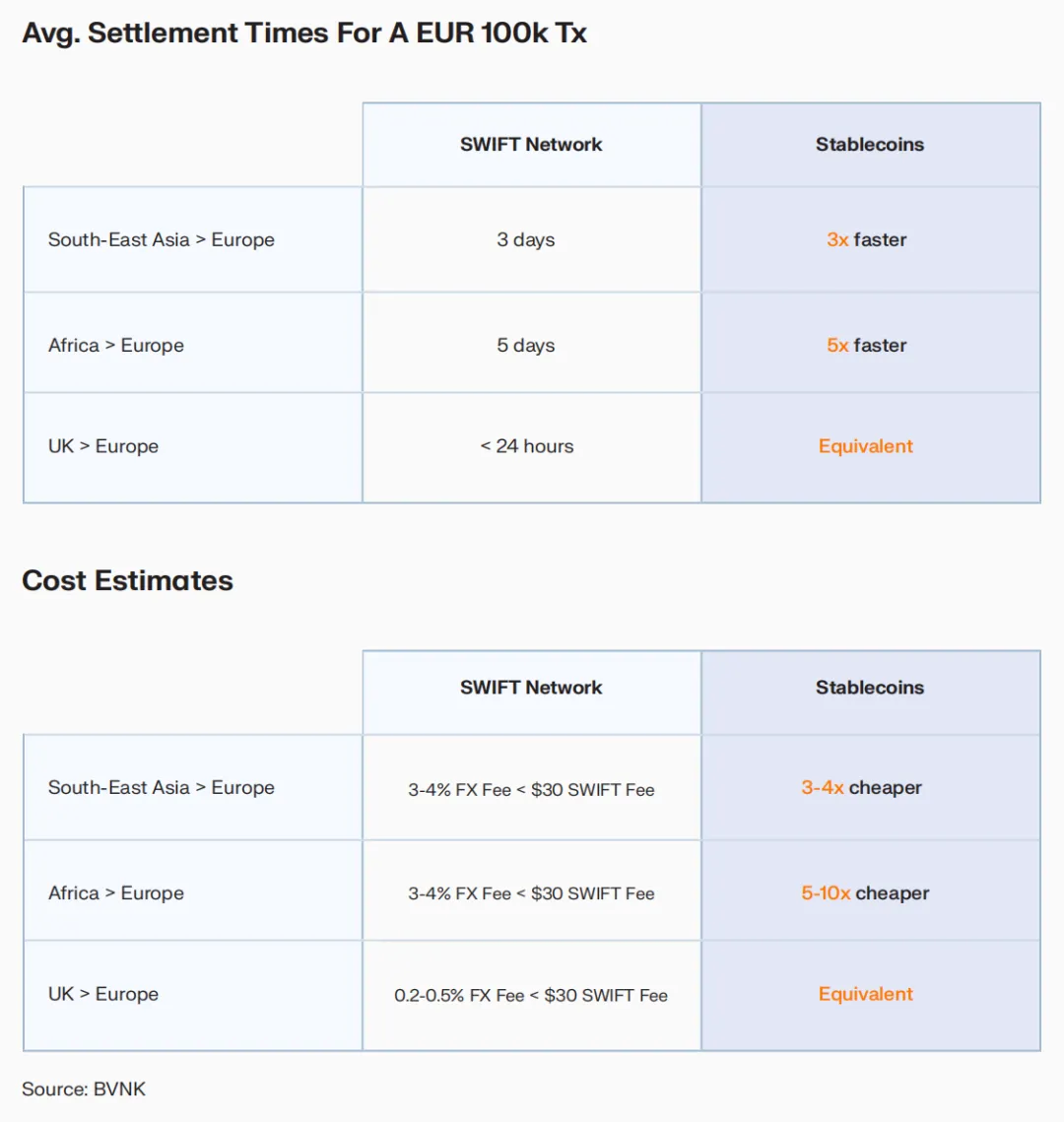 借助稳定币的原子结算,预存资金的需求会大幅下降,甚至完全消失。稳定币让交易双方无需承担信用风险,从而释放资本,消除传统跨境流转中最大的低效环节之一。