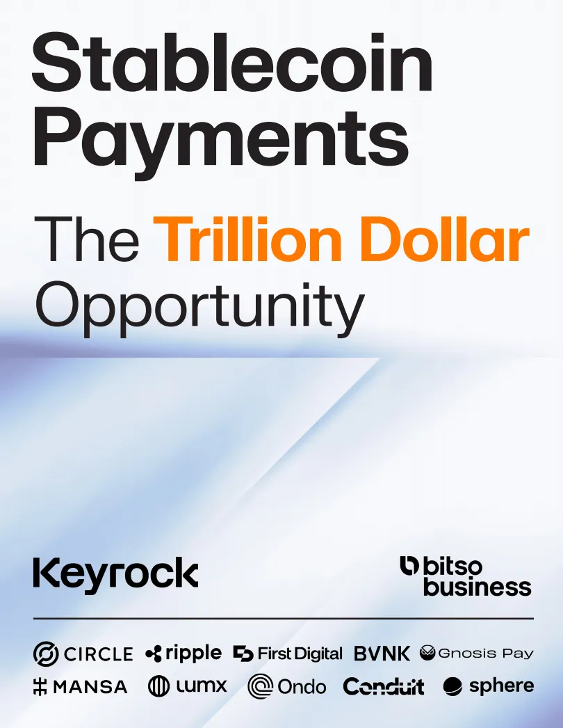 因此,我们编译了 Keyrock 与 Bitso 的这份《Stablecoin Payments: The Trillion Dollar Opportunity》稳定币报告,旨在深入探讨稳定币作为支付轨道的全貌——从传统体系到重塑全球支付栈的新基建,通过剖析其架构、盘点已经落地的现实用例,以及即将撬动 1 万亿美元跨境规模的趋势,以揭示稳定币在全球支付领域的革命性潜力及其如何为新兴市场带来变革。