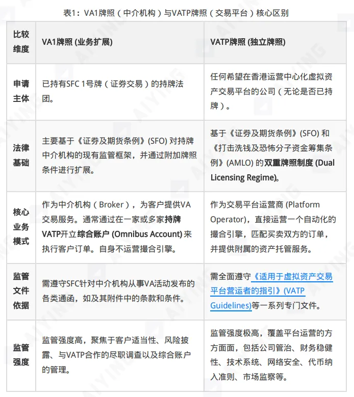 要准确理解人员配置要求,区分 “VA1 牌照” 与独立的 “VATP 牌照” 至关重要。两者在监管框架、业务模式和申请主体上存在本质区别: