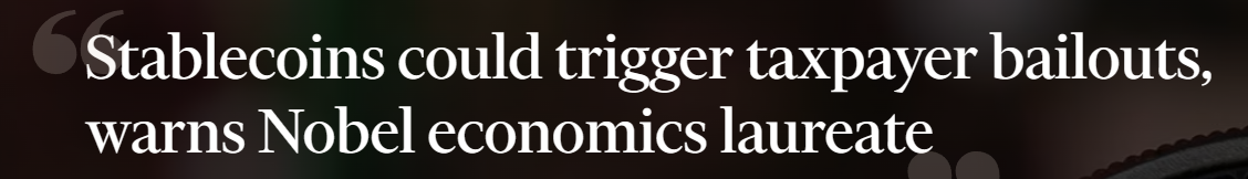 - 诺贝尔经济学奖得主:稳定币监管不足可能引发政府被迫救助