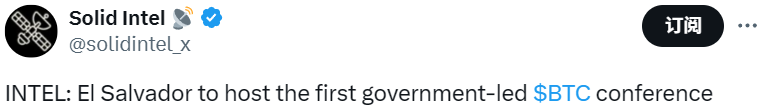 - 萨尔瓦多将举办首个政府主导的比特币会议