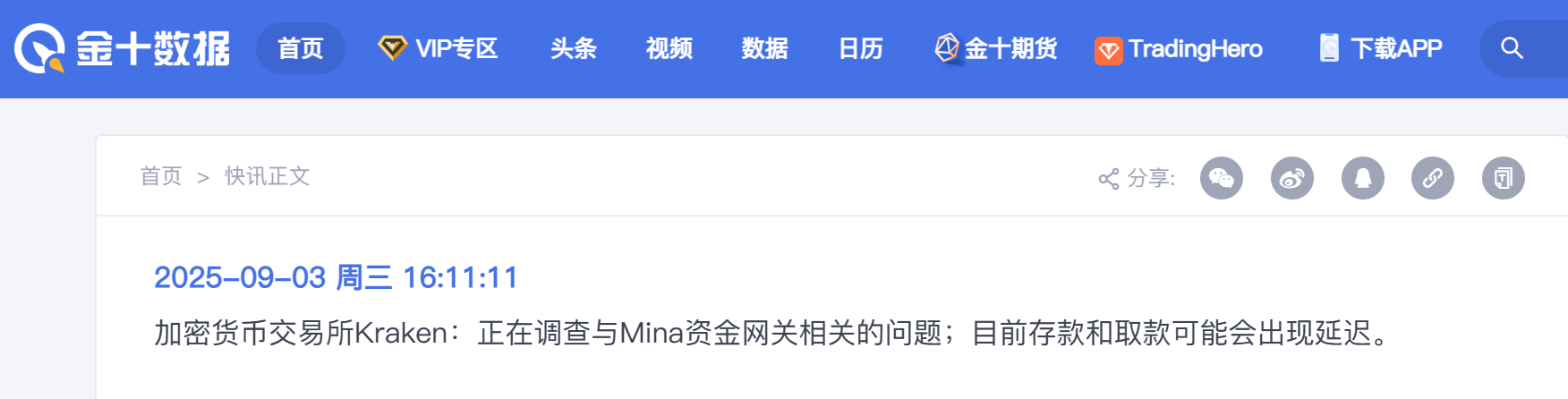 - Kraken:正在调查与 Mina 资金网关相关的问题