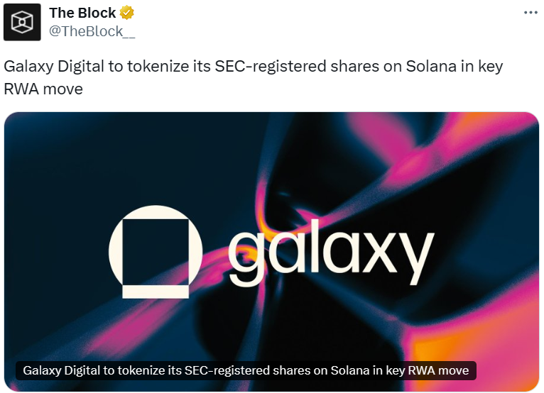 - Galaxy Digital 将在 Solana 上发行代币化股权