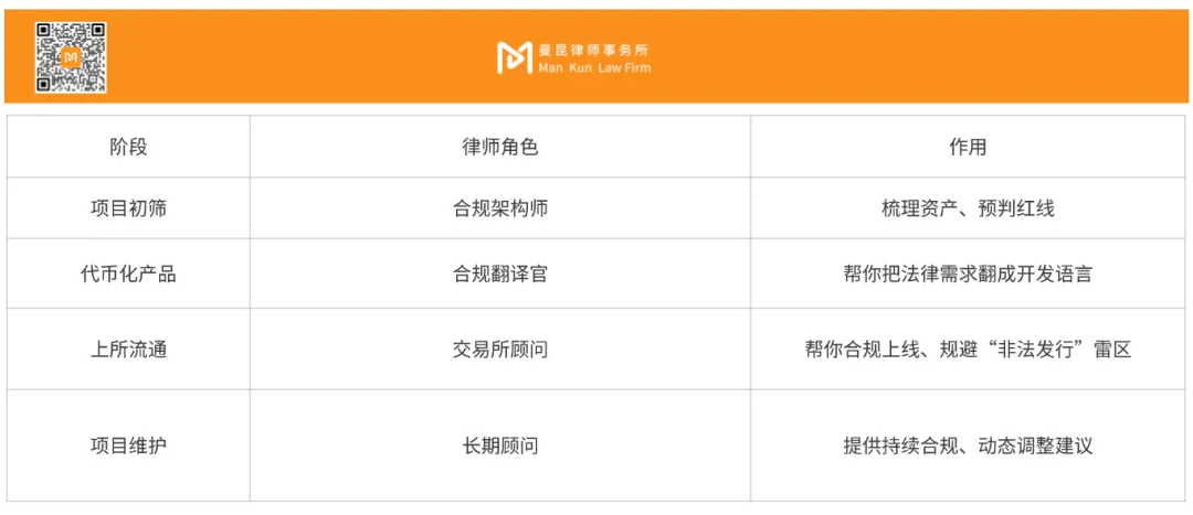 这一步,律师团队不是 “发币盖章的人”,而是结构设计师+监管翻译官+合规接口人。