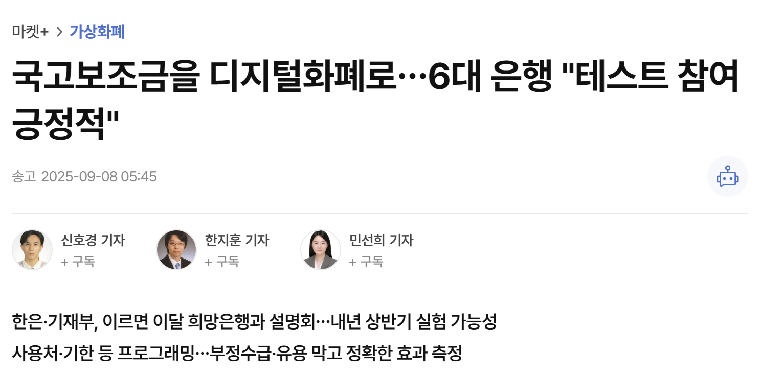 - 韩国银行及政府将推进以数字货币发放国库补助金实验