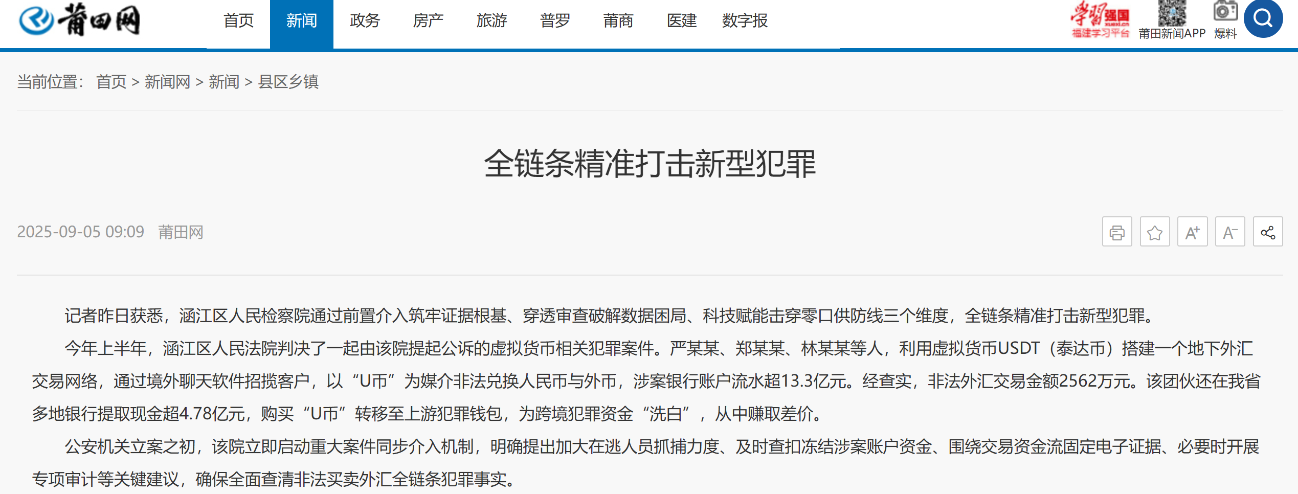 - 福建莆田法院判决虚拟货币非法外汇交易案,涉案金额超 133 亿元