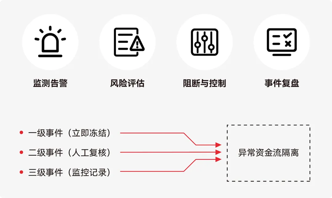 即便建立了交易前与交易后监测体系,也可能出现突发事件,例如可疑交易突破原有风控阈值,黑客攻击导致资金被或是系统出现异常运行。这些情况往往具有突发性与高危性,如果缺乏有效的应急机制,风险可能迅速扩散,导致系统性隐患。因而,在 AML/CFT 框架下建立一套技术与流程相结合的应急与处置机制,是合规体系不可或缺的一环,其目标在于快速响应、有效隔离风险,并实现可追溯的报告与优化。
