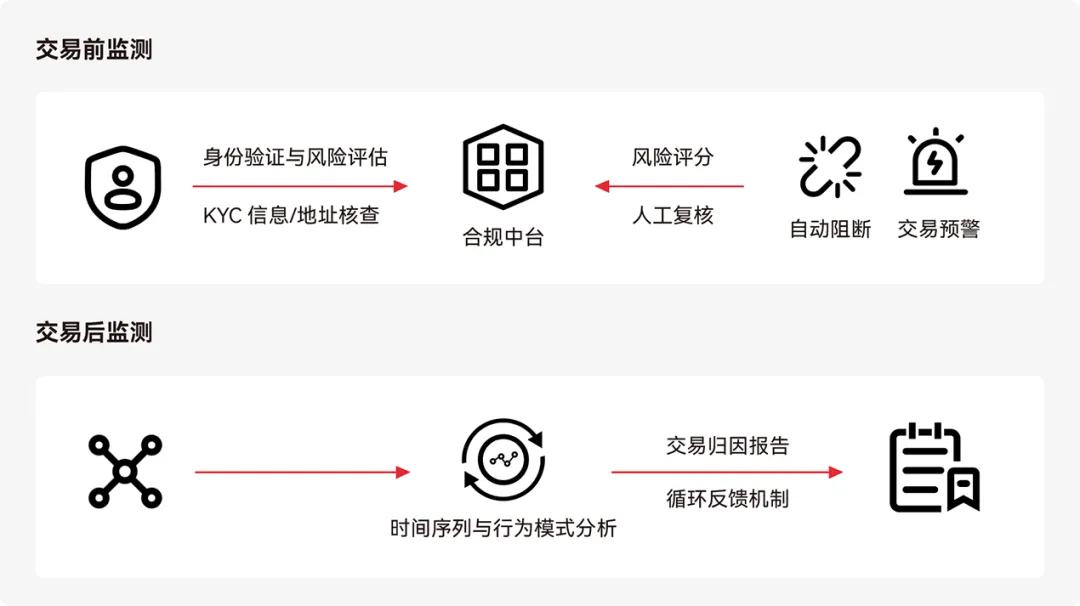 - 交易后发现的异常行为可反馈到交易前监测规则及 AI 模型,实现持续优化;