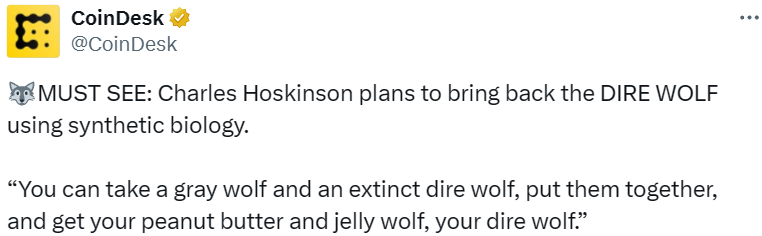 - Cardano 创始人计划利用合成生物学复活恐狼