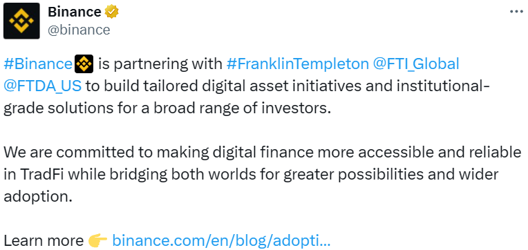 - 币安与富兰克林邓普顿达成合作开发数字资产计划