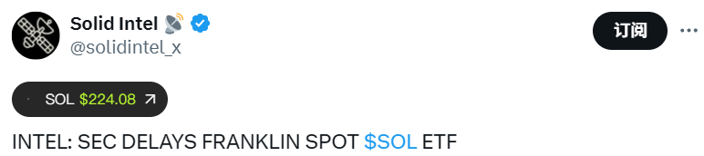 - 美 SEC 延迟审核富兰克林的 SOL 现货 ETF 申请