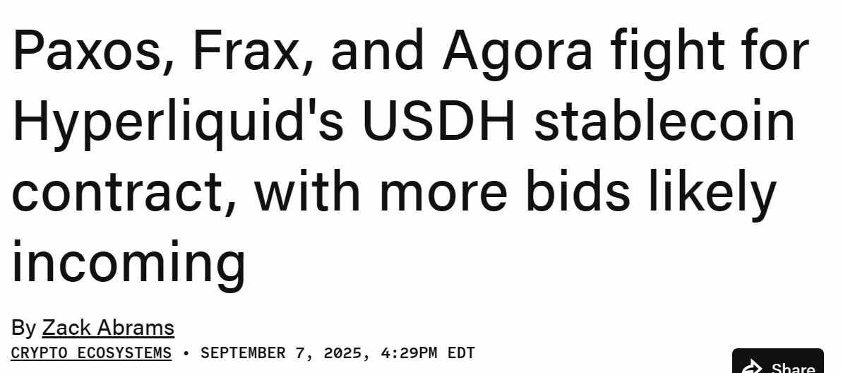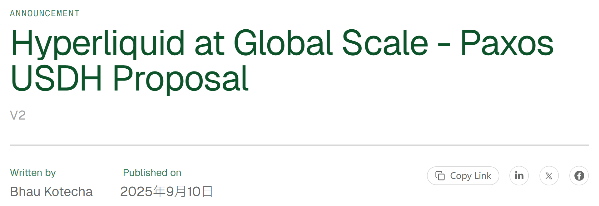 - Paxos 提交为 HyperLiquid 发行稳定币 USDH 的申请提案