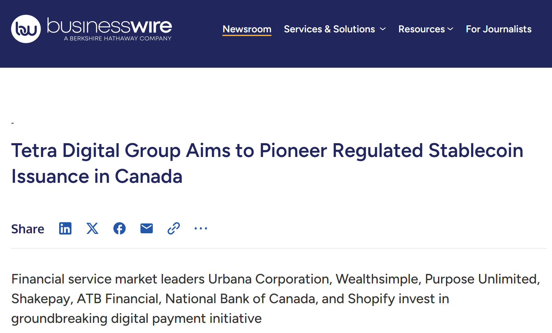 - 数字资产基础设施提供商 Tetra Digital Group 宣布 1000 万美元融资,Urbana Corporation 等参投