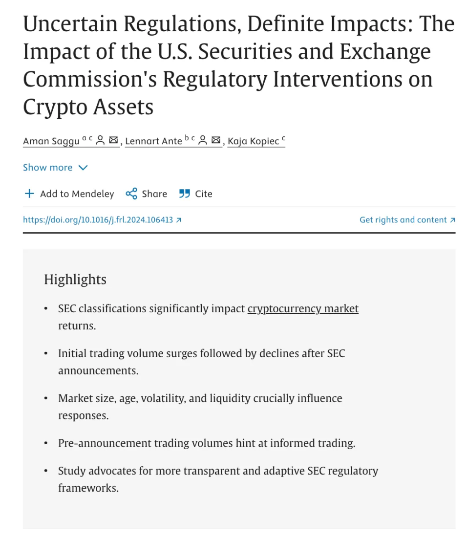 市场并未等待最终判决结果。学术事件研究显示,当 SEC 将某一资产界定为证券时,该资产价格会大幅暴跌:3 天内跌幅达 5.2%,1 个月内跌幅超 17%。