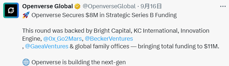 - Layer0 基础设施 Openverse 完成 800 万美元战略 B 轮融资