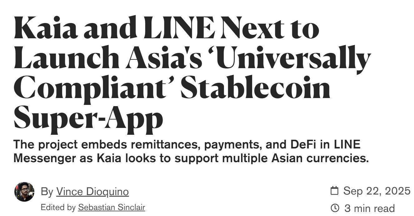 - Kaia 与 LINE Next 将合作推出稳定币超级应用