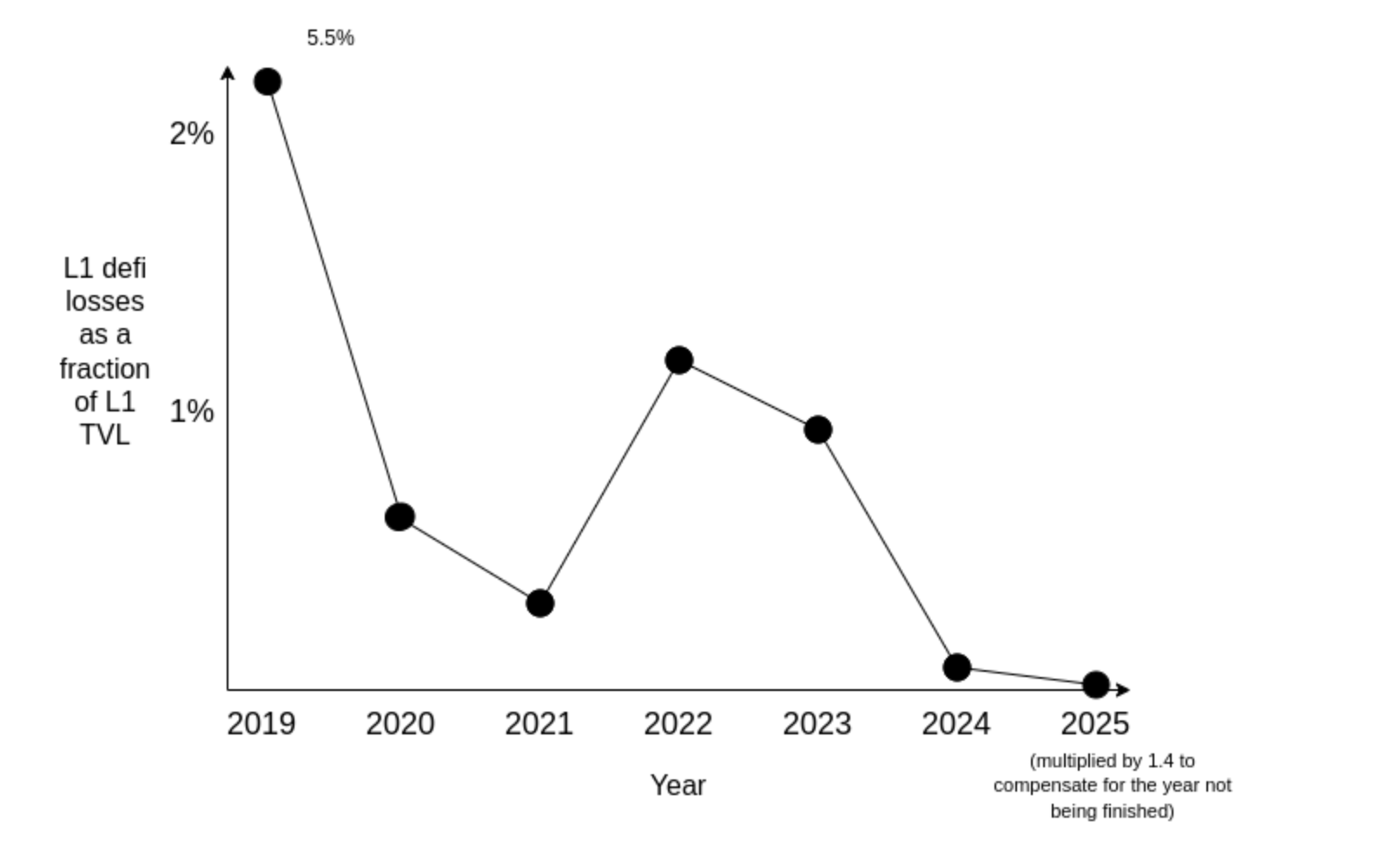 DeFi 的攻击和损失事件仍层出不穷。但这些事件正逐渐被推向生态系统的更边缘地带——一个用户更具实验性和投机性的地方。目前更具稳健性的核心应用正在形成,虽然无法排除的尾部风险仍然存在,但 TradFi 也存在此类尾部风险——鉴于全球政治日益不稳定,对于全球很多人而言,TradFi 的尾部风险现在已超过 DeFi。从长远来看,可以预见成熟的 DeFi 生态系统的透明度和自动化执行将使其比传统金融更加稳定。