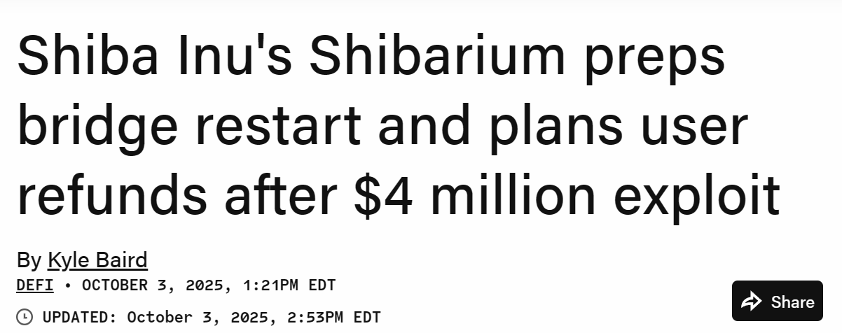 - Shibarium 计划重启以太坊跨链桥并制定补偿计划