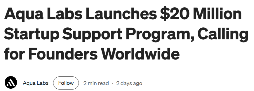 - Aqua Labs 推出 2000 万美元创业支持计划