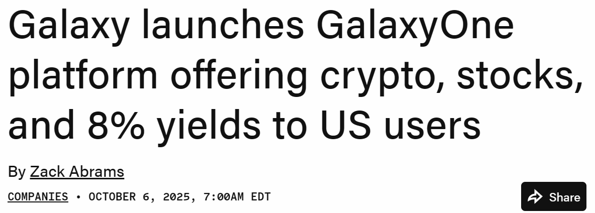 - Galaxy Digital 推出新应用程序 GalaxyOne