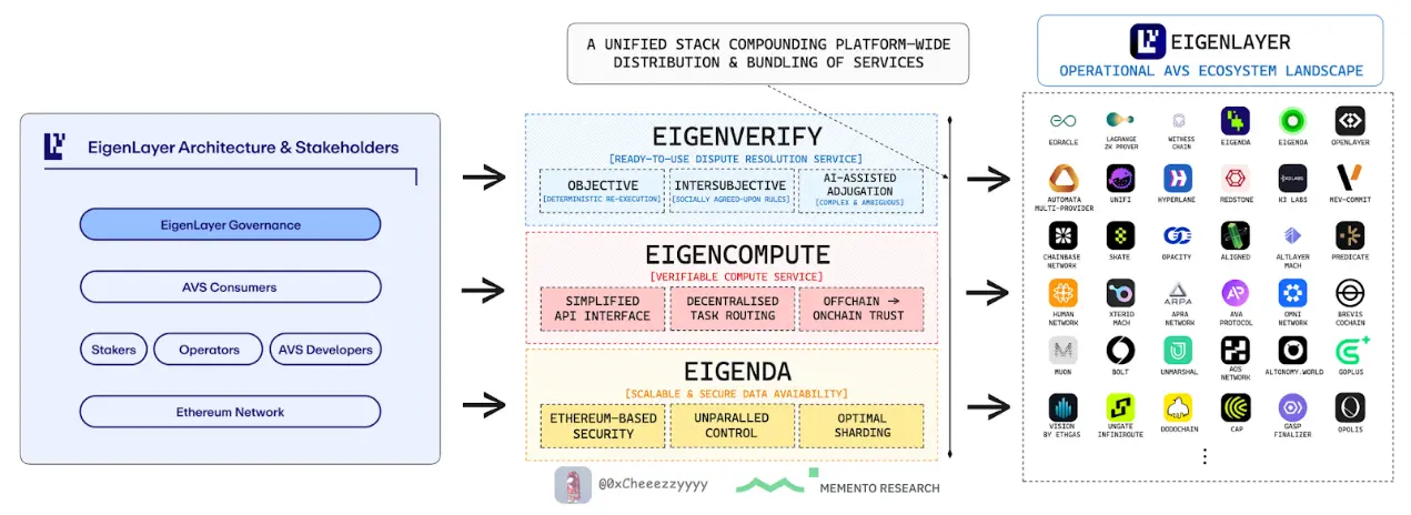 - EigenVerify(争议解决):提供争议解决即服务,包括客观的重新执行、主体间共识,甚至 AI 辅助裁决。所有结果均支持追索权,确保争议能够最终解决并具有经济约束力。