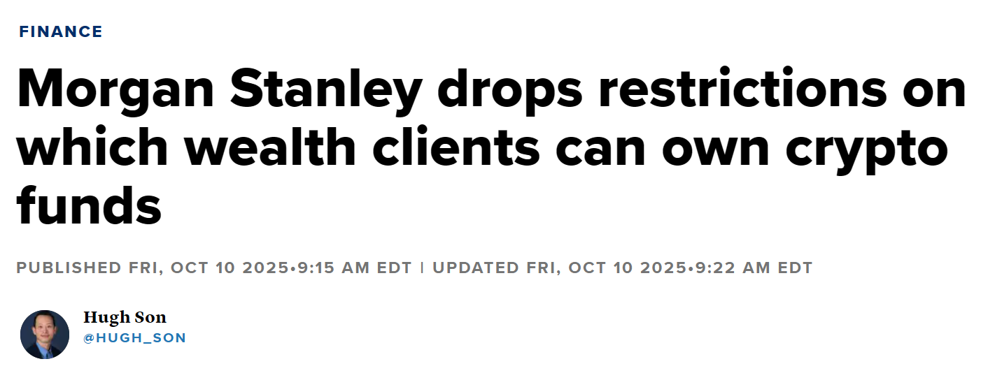 - 摩根士丹利取消对财富客户持有加密基金的限制,向所有客户扩大加密货币投资渠道