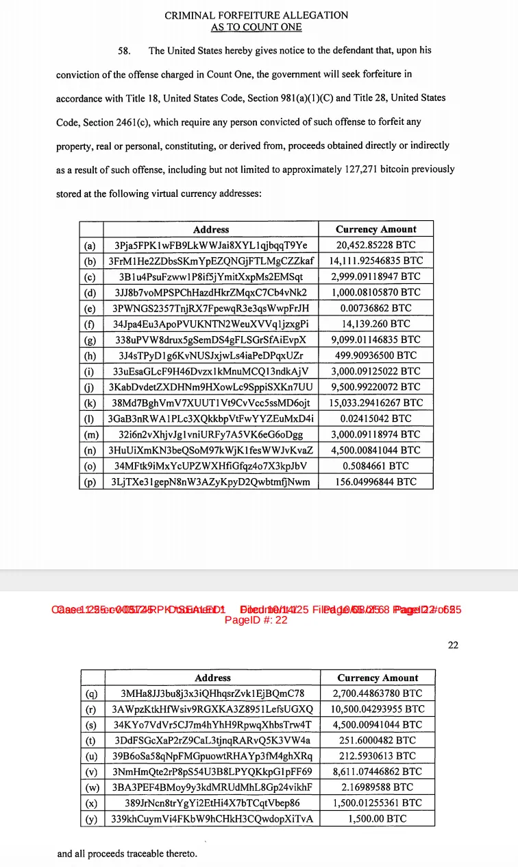 太子集团还使用了一系列专业化的链上洗钱技术——“喷射-漏斗式 (spray-funnel)” 模式:通过反复将巨额加密资产拆分至数十个钱包,再重新合并,以打乱链上追踪路径。到 2020 年前后,陈志已积累了约 127,271 枚比特币的非法财富,这些资产分散存储在他控制的 25 个非托管钱包中。