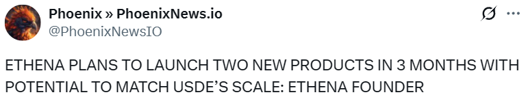 - Ethena 首次扩展团队,计划三个月内推出两款匹配 USDe 规模的新产品