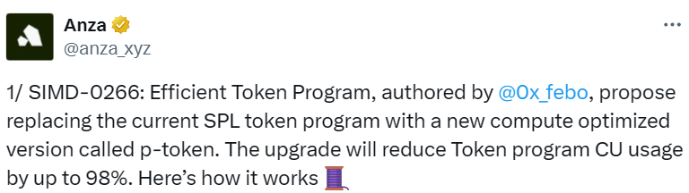 - Solana SIMD-0266 提案:p-token 替换 SPL Token,升级后 CU 使用率将降低 98%
