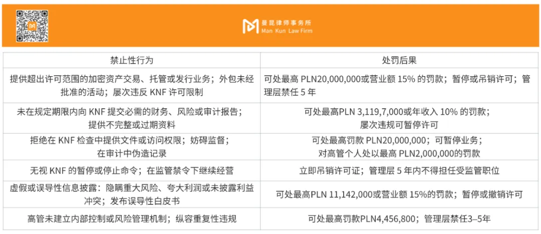 除明确合规要求与监管框架外,波兰加密资产法案同样对从业主体的行为边界作出了严格限定,明确列举了在市场运作中应当避免的违法与违规行为。同时,法案还通过设立刑事责任条款,为加密资产领域的违法违规行为加上了 “高压线”,以严厉的惩罚措施确保市场的透明与秩序。