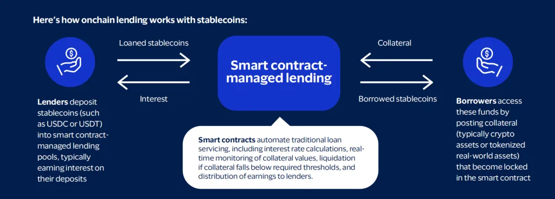 随着稳定币提升跨境支付效率,它可能成为新兴跨境借贷及全球信贷体系的基石:借助智能合约,连接全球资金方与需求方,并将贷款协议的整个生命周期自动化。
