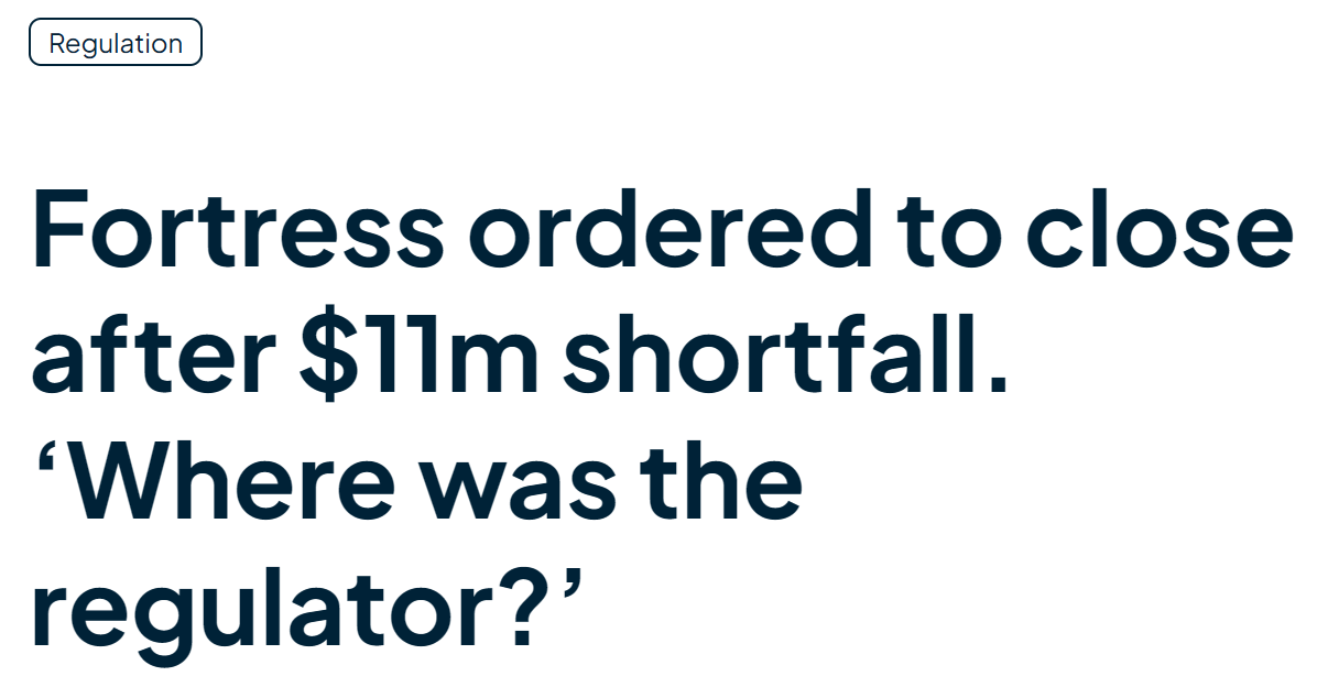- 加密信托公司 Fortress 因 1100 万美元资金缺口被勒令停止运营