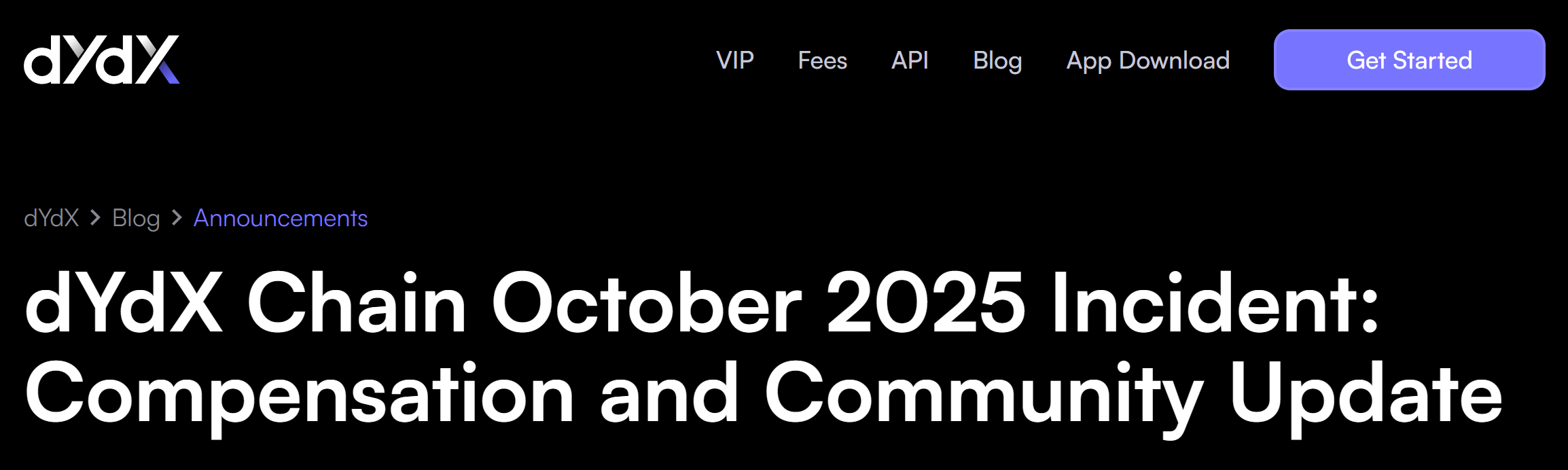 - dYdX 发布 10 月中断事件补偿方案与社区更新,拟补偿金额为 46.2 万美元