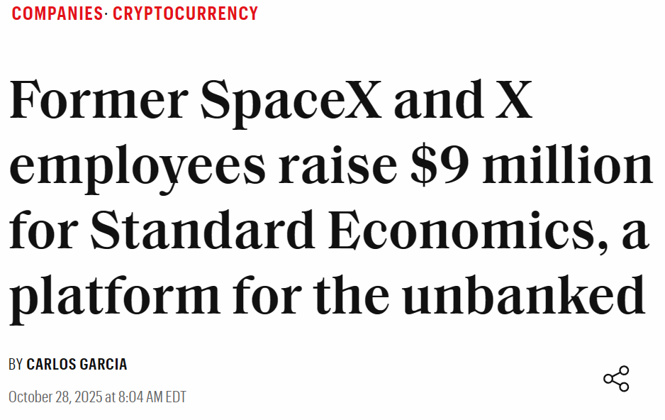 - 稳定币支付公司 Standard Economics 完成 900 万美元种子轮融资,Paradigm 领投