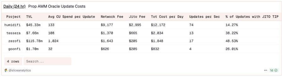 Prop AMM 更新:简单曲线更新极便宜。Wintermute 的更新低至 109 CU,总费用仅 0.000007506 SOL
