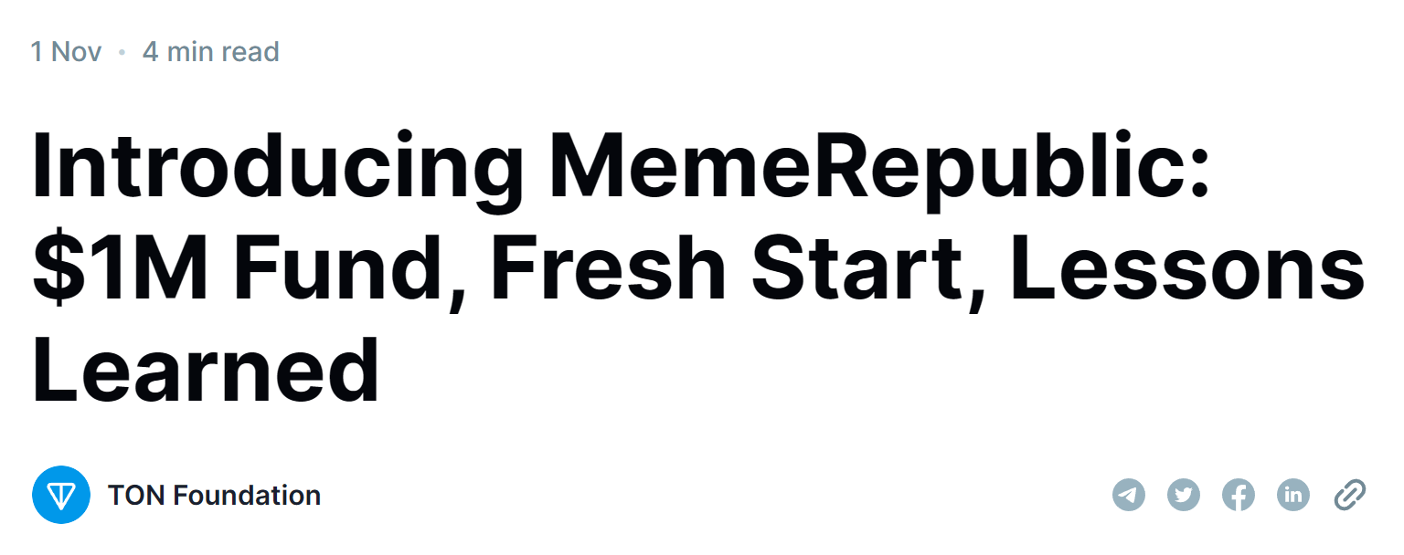 - TON 基金会推出 MemeRepublic 以取代 Memelandia