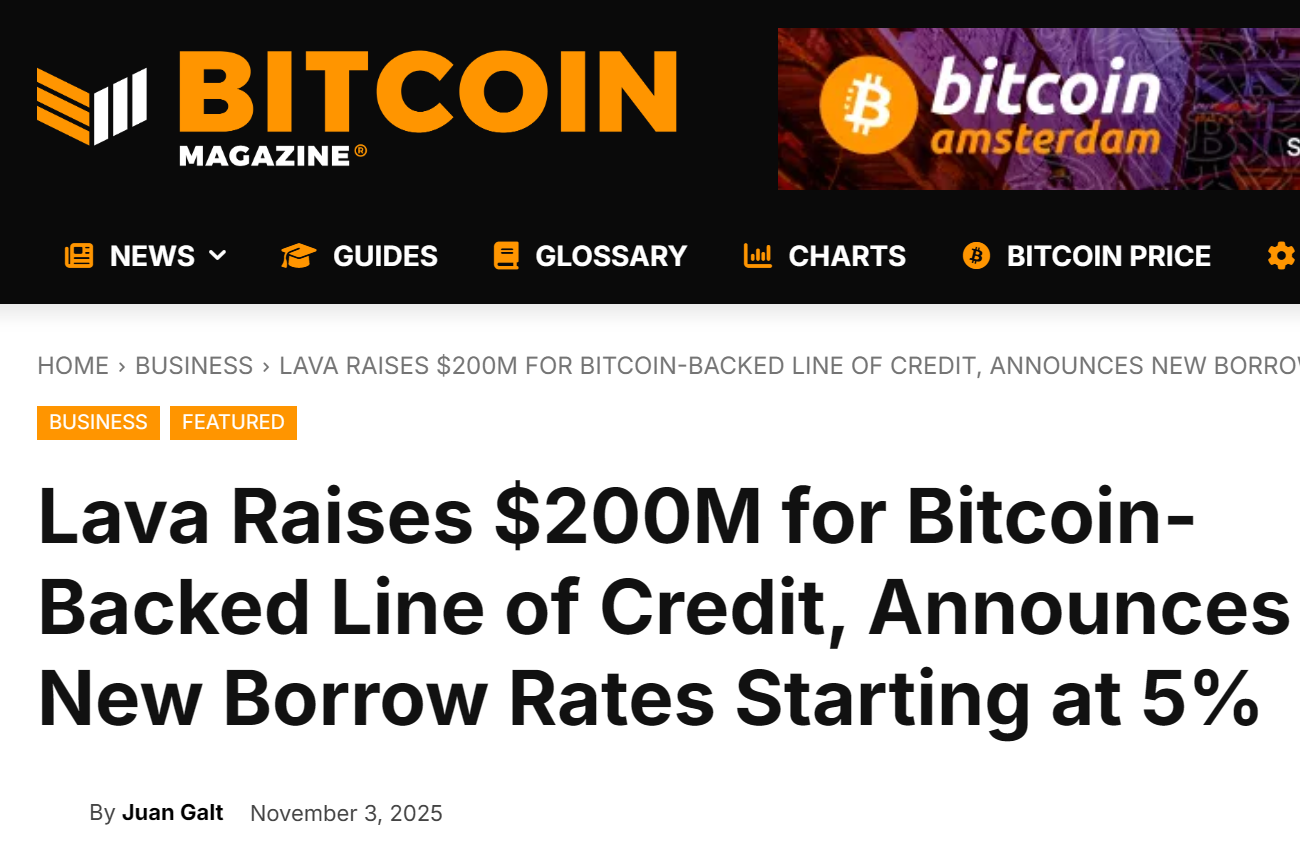- 比特币借贷平台 Lava 完成 2 亿美元融资